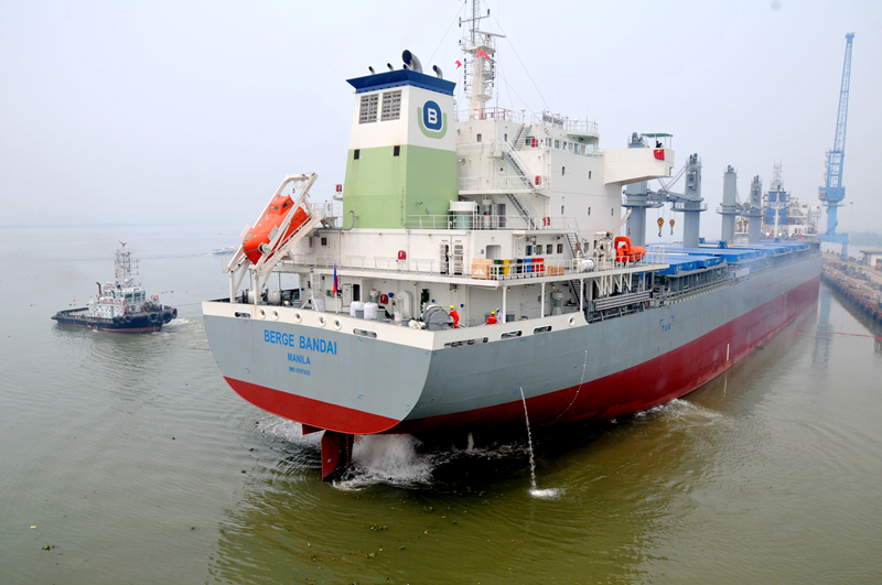 2016年3月31日上午十時(shí)許, JNS146船“Berge Bandai”號(hào)的交船簽字儀式在我司辦公樓五樓總經(jīng)理會(huì)議室進(jìn)行,船東和我司代表出席了儀式。正午一時(shí)許,隨著碼頭鞭炮聲四起,“Berge Bandai”號(hào)緩緩離開(kāi)公司碼頭,啟航遠(yuǎn)征。